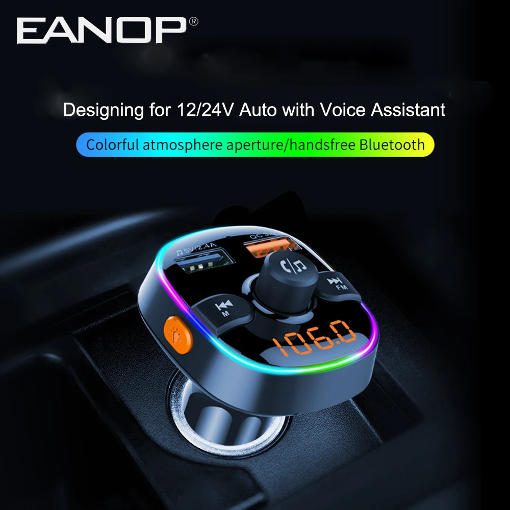 Eanop Bc52 Fm Transmitter Bluetooth Car Kit Bt5 0 Car Handsfree With Voice Assistant Modulator Fm Tf Card Qc3 0 Usb Charger Fm Transmitters Aliexpress